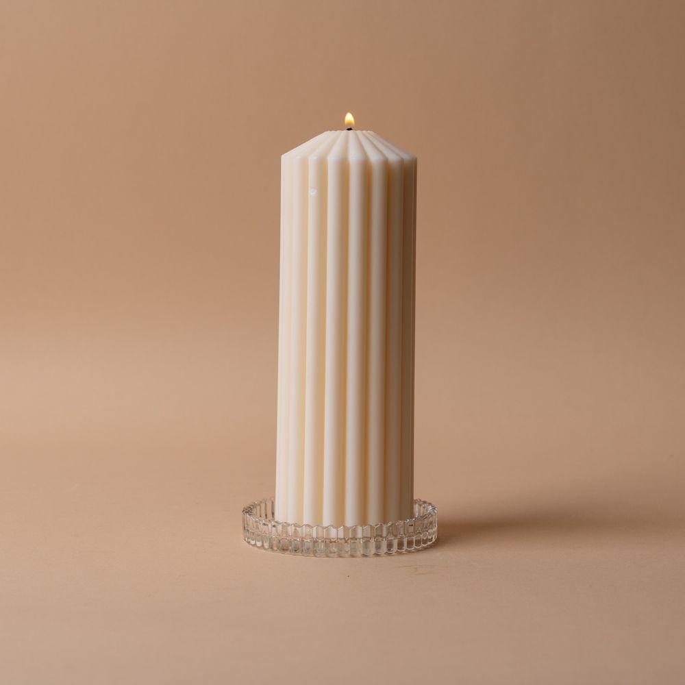 Plateau à bougie pilier en verre transparent