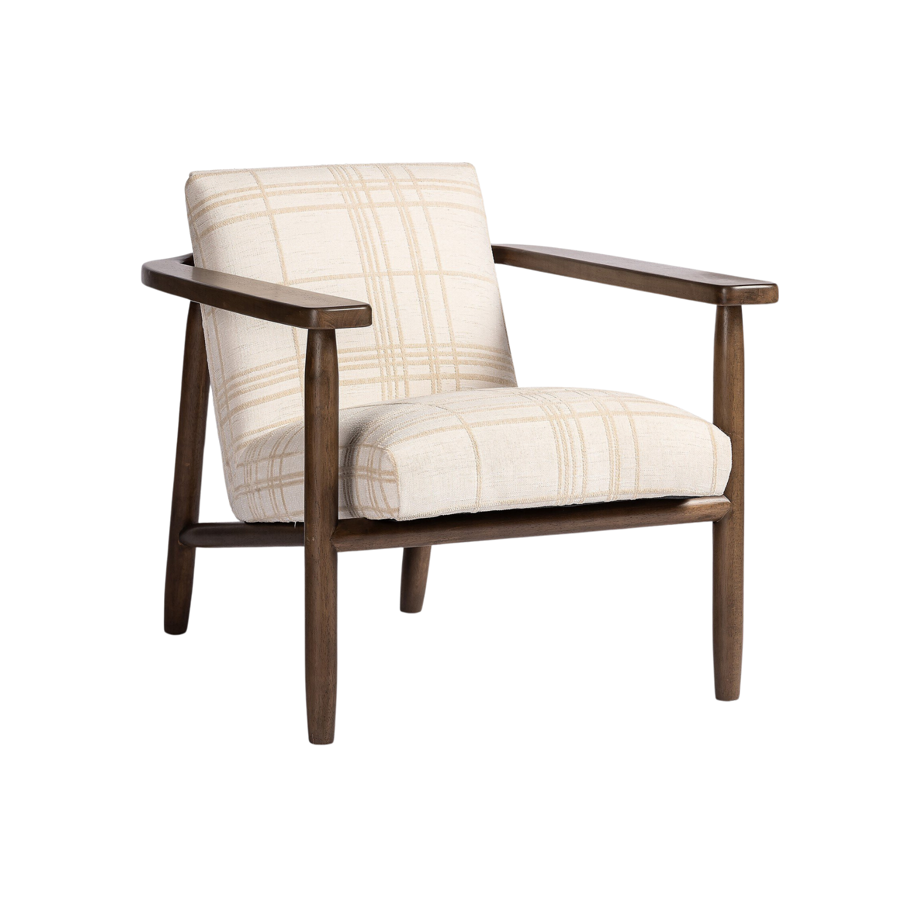 Offrez-vous le luxe ultime avec le fauteuil Arnett. Revêtu d'un tissu ivoire traditionnel à motif géométrique classique, ce fauteuil vous garantit une assise somptueuse. Sa structure en fil d'acier et bois d'hévéa vieilli forme un élégant U, tandis que deux lanières de cuir pleine fleur apportent une touche finale raffinée. Découvrez l'élégance et le confort du fauteuil Arnett.
